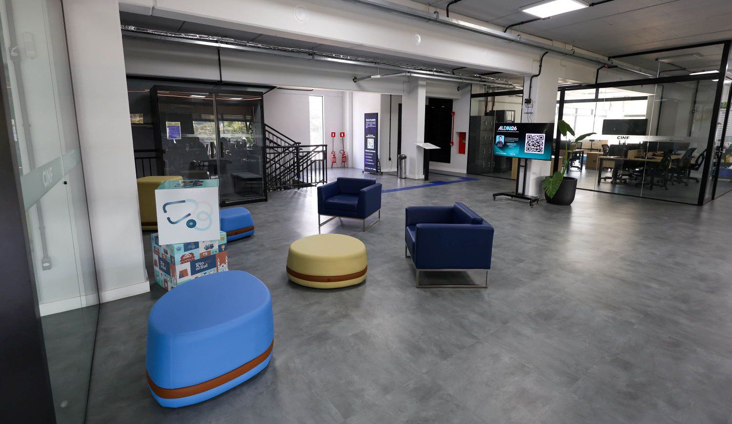 A nova estrutura do Centro de Inovação Norberto Frahm (CINF) conta com salas para reuniões, espaço de coworking, sala maker, escritórios e, ainda, espaços disponíveis para ocupação de futuras empresas residentes.
